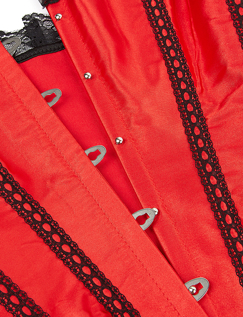 12-teiliges Korsett aus Kunststoffstäben, schwarzer Spitze und rotem Korsett