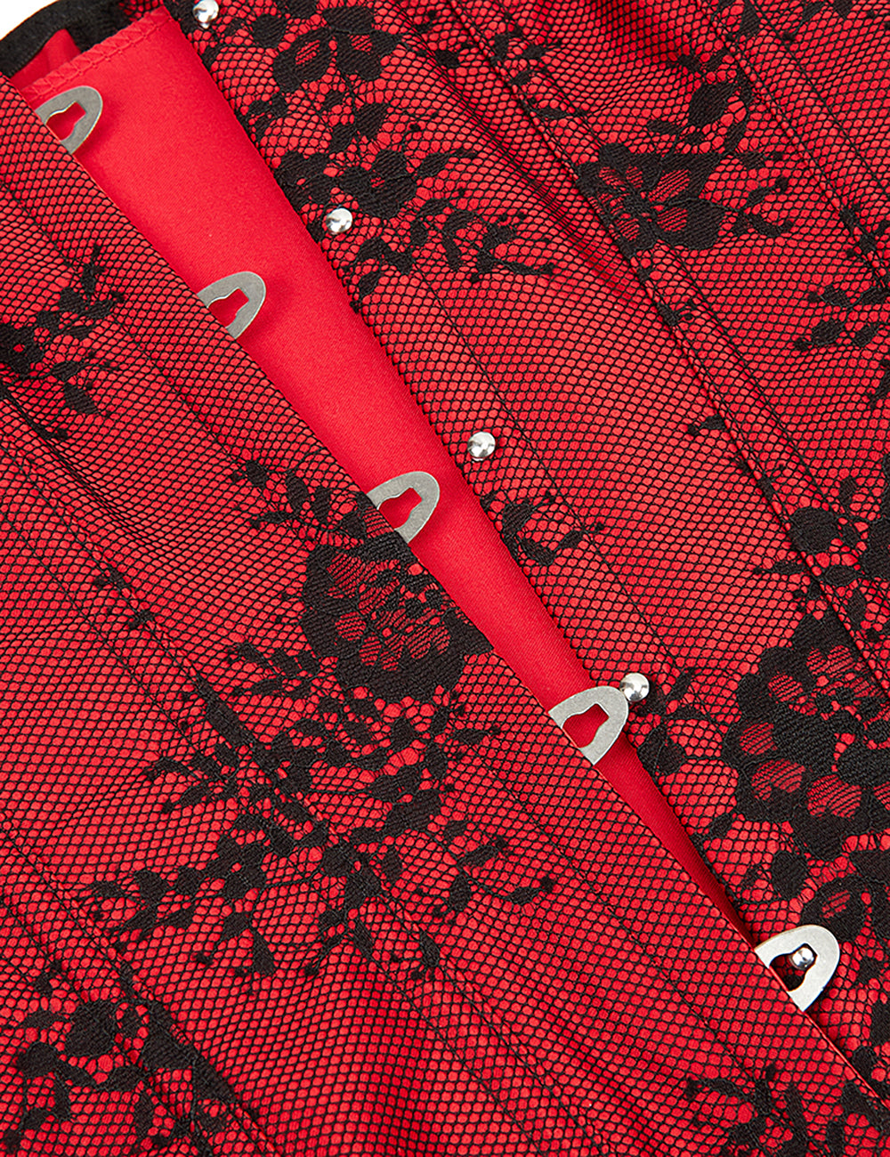 12 Pieces Plastic Bones Sexy Lace Sleeves Stitching Red Corset