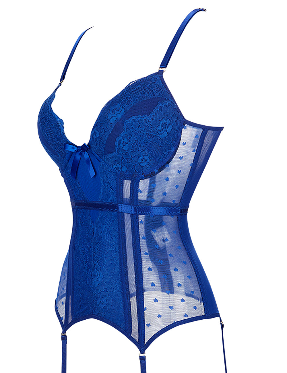 8-teiliges Korsett aus Kunststoffstäbchen, blau, Deluxe-Satinspitze, Ziernähte