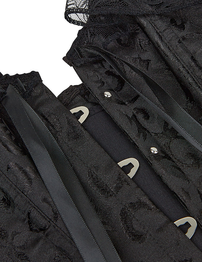 Black off Shoulder 12 Pieces Plastic Bones Lace Corsets with Panties