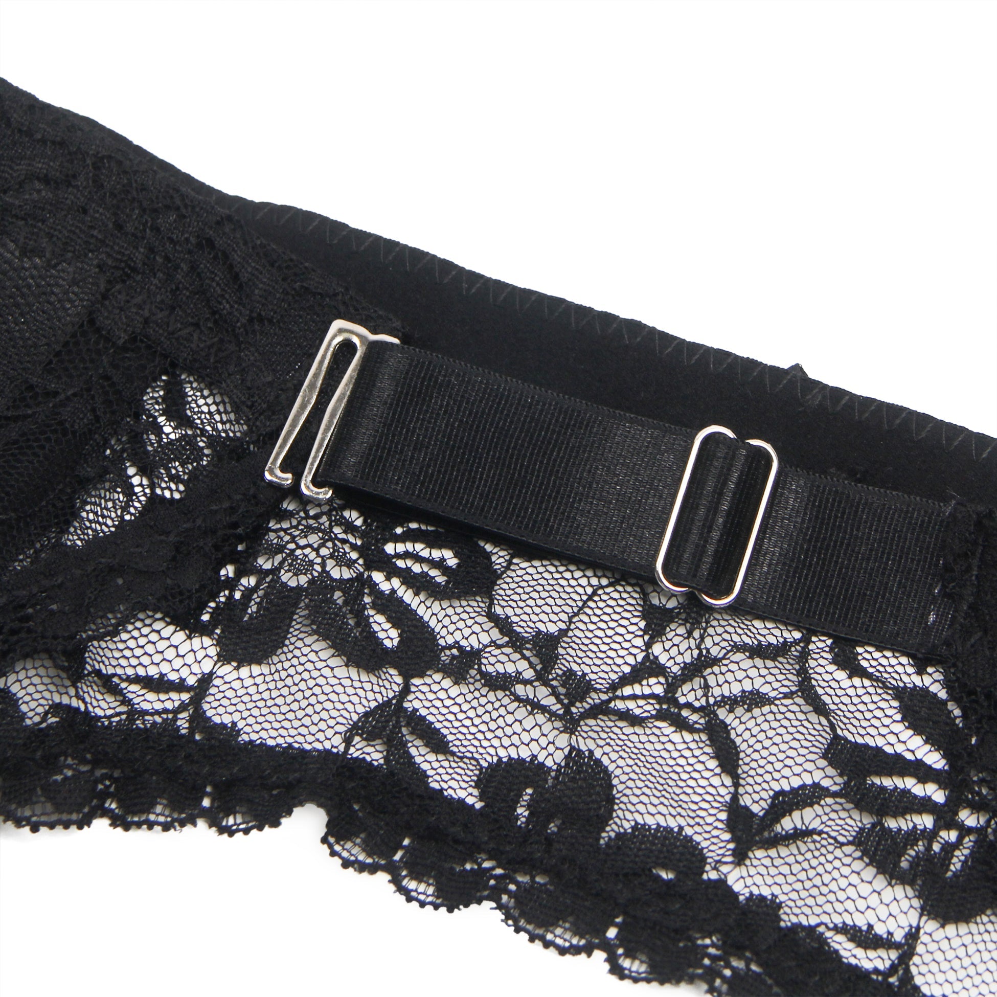Schwarzer, sexy Strumpfhalter aus Spitze mit Metallclips