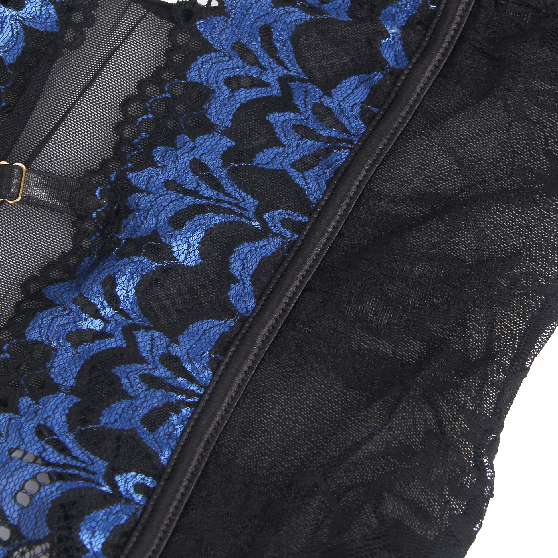 • Blaues, sexy, besticktes Spitzen-Strumpfband-Dessous-Set
