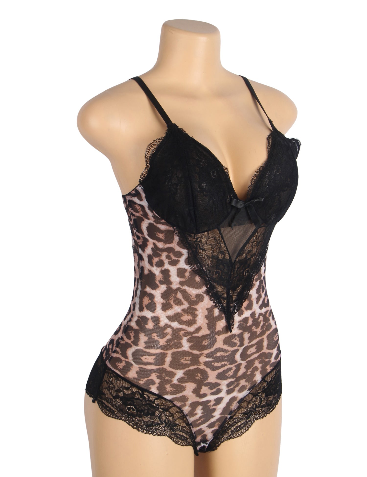 • Sexy Nachtwäsche mit Leopardenmuster, Spitzen-Stramplern und offenem Schritt