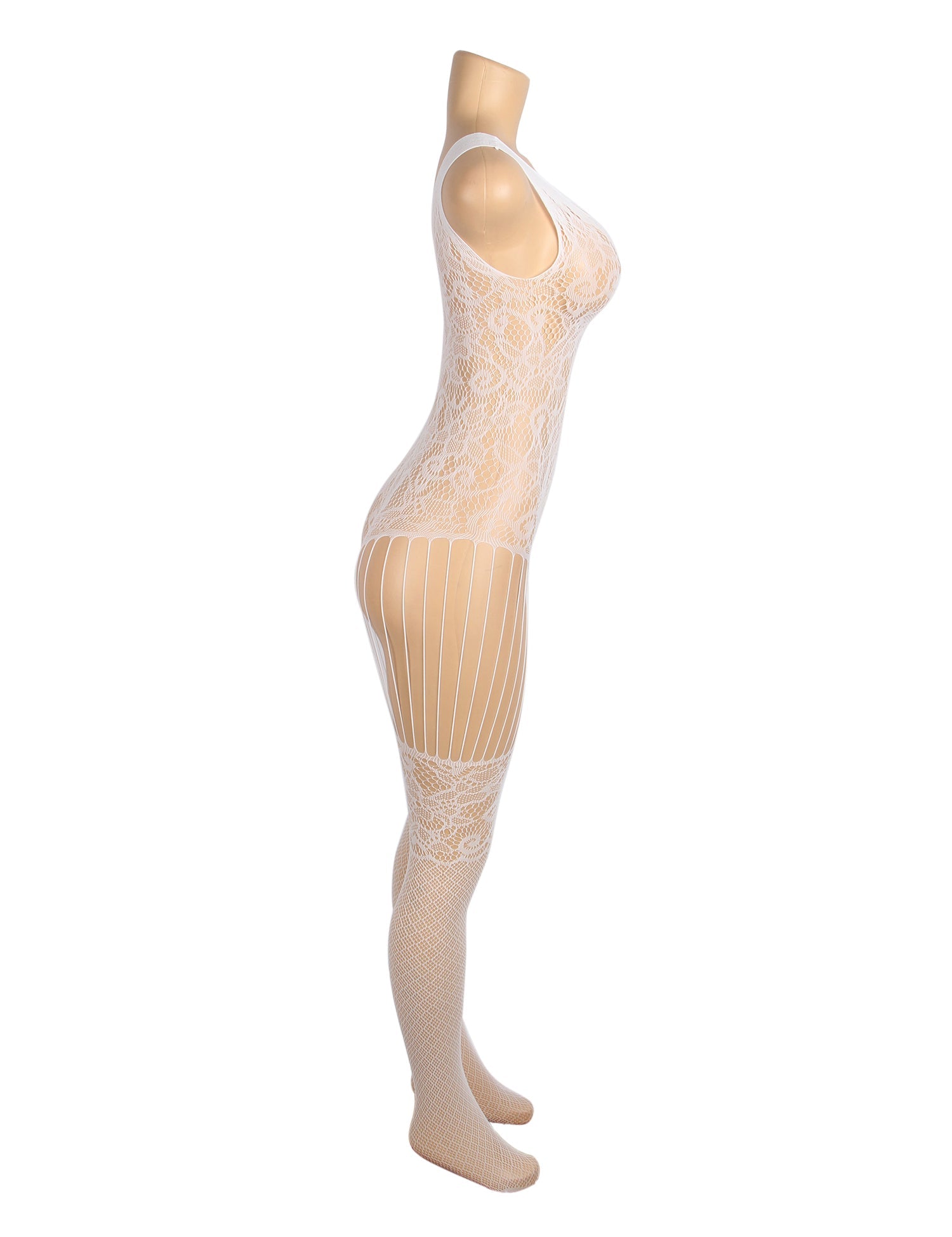 Weißer, sexy Jacquard-Body mit leuchtendem, offenem Schritt