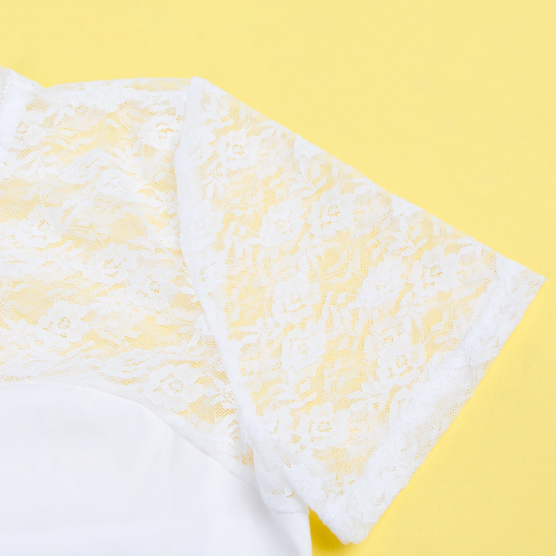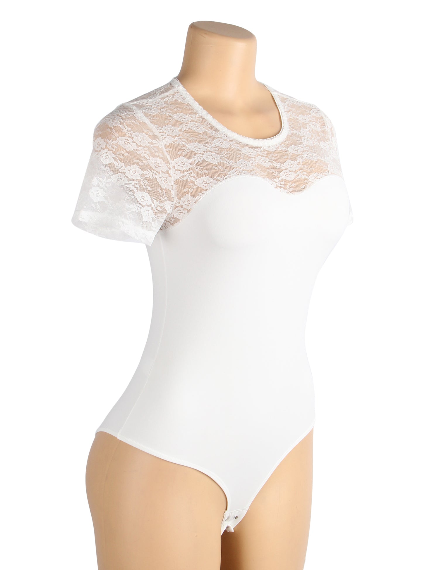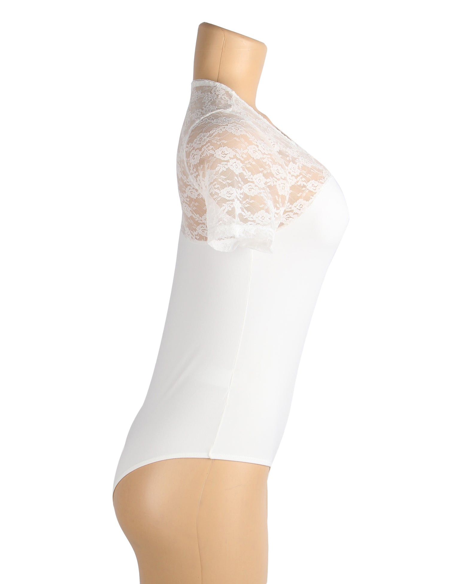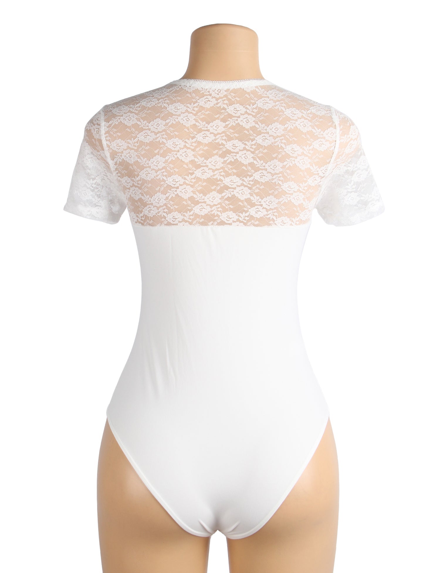Weißer, sexy Spitzenbody mit offenem Schritt und kurzen Ärmeln