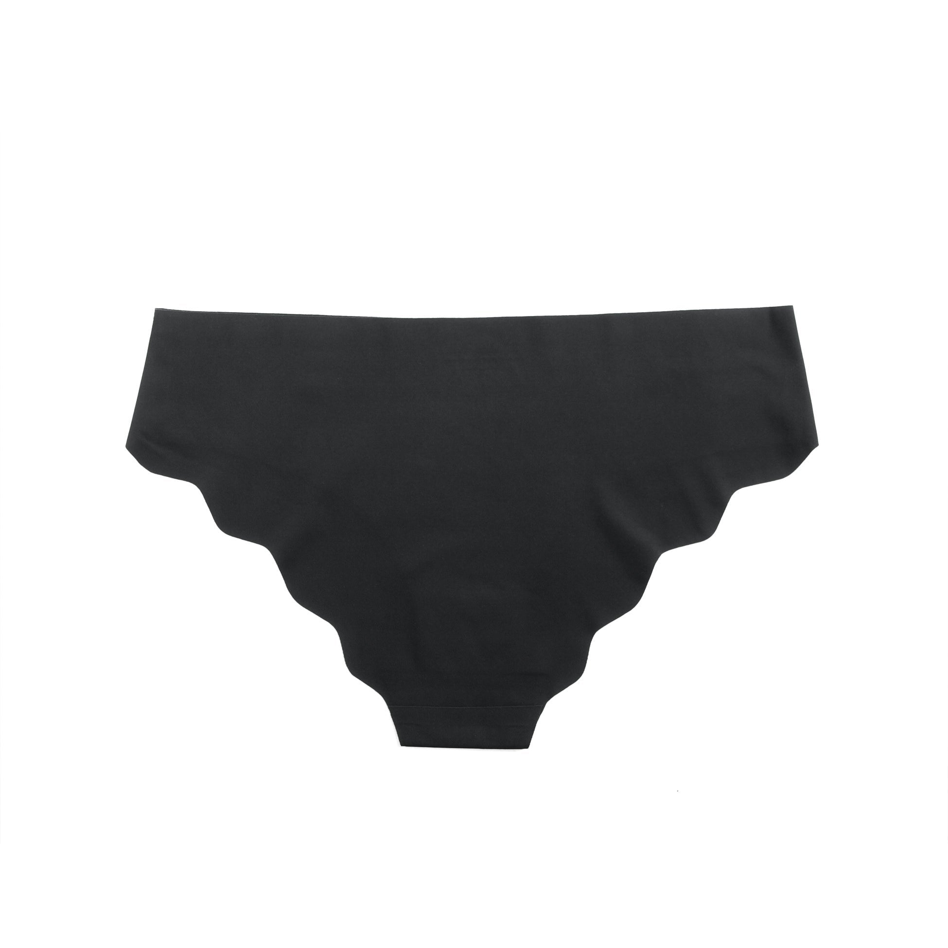 • Culotte noire sexy en soie glacée à bords ondulés et sans coutures
