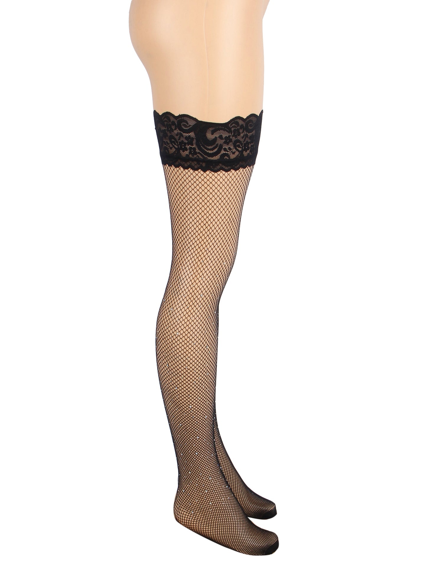 • Bas résille noirs sexy en dentelle et strass avec silicone