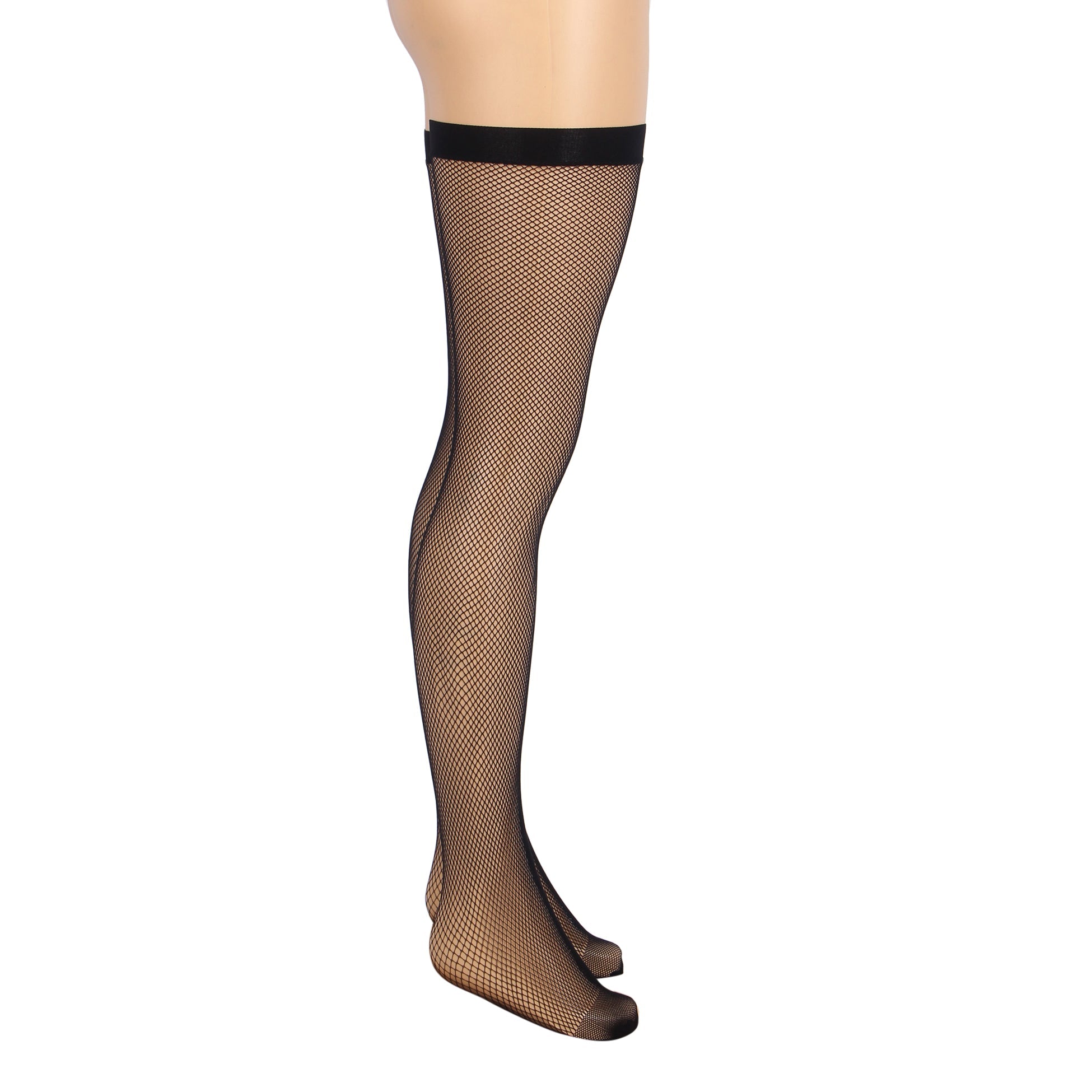Bas résille noirs sexy en maille, tailles S et M, avec bord anti-roulis