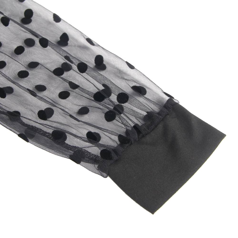 • Body tendance à entrejambe ouverte, en résille noire à pois, manches longues et décolleté plongeant.