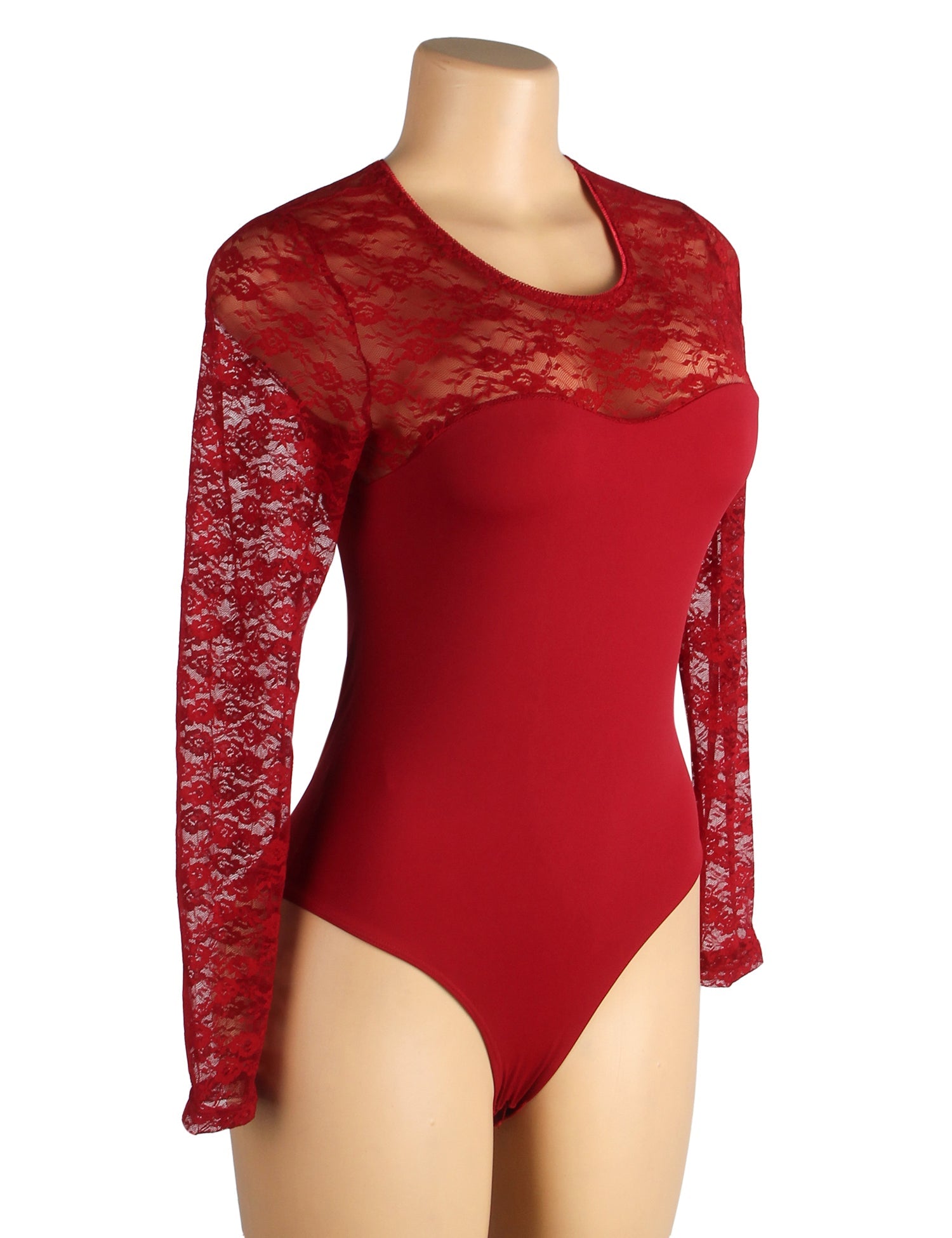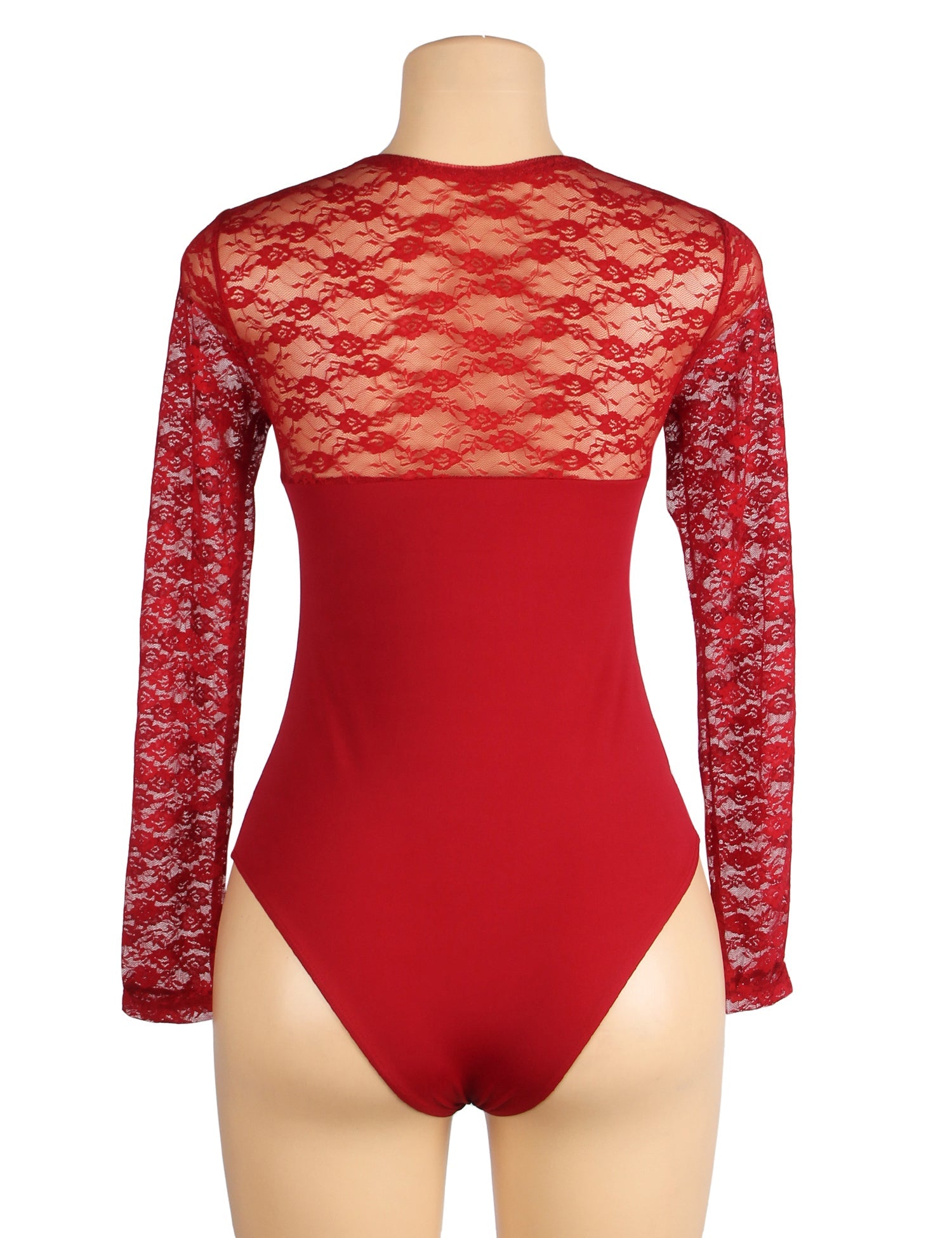 • body bordeaux en dentelle à manches longues et entrejambe ouverte