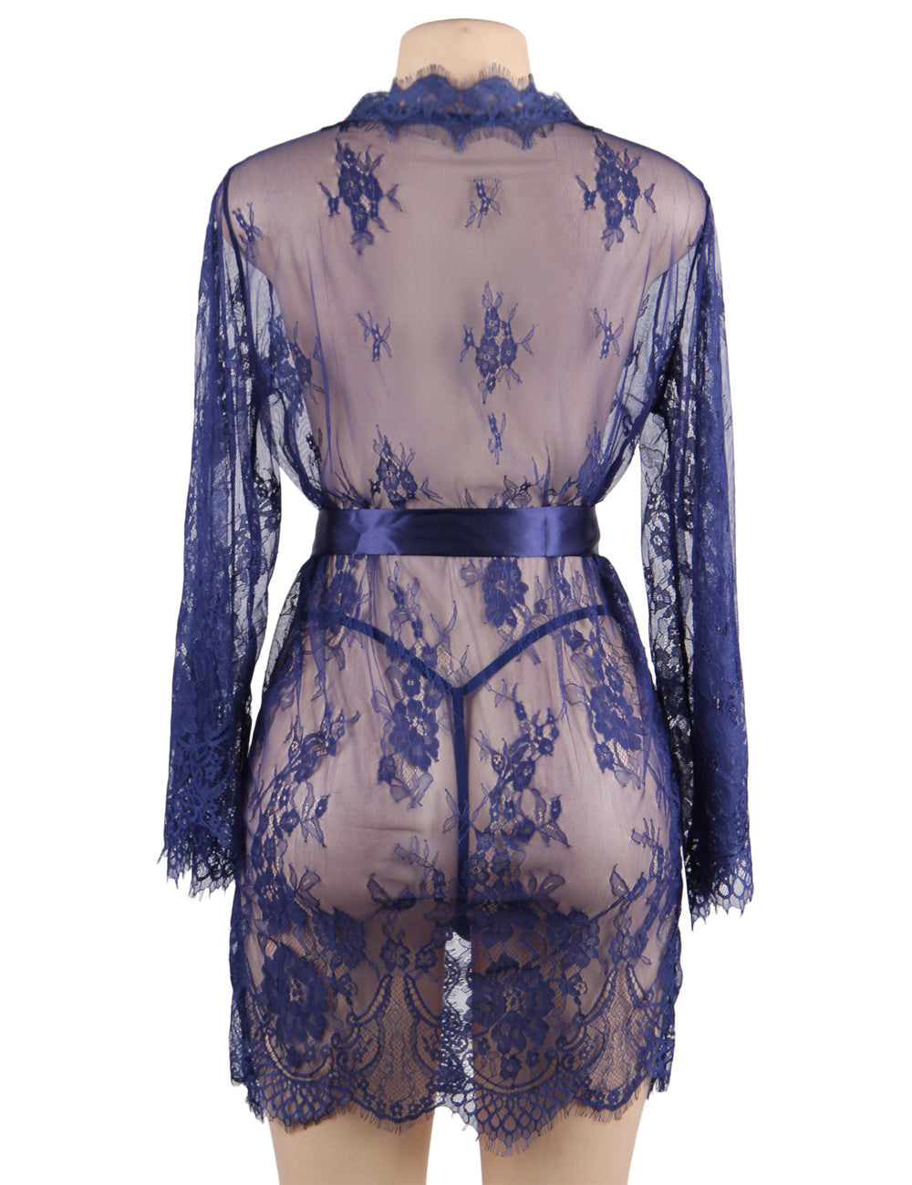 • Nuisette bleue grande taille avec string et manches longues sexy, courte nuisette en dentelle cils