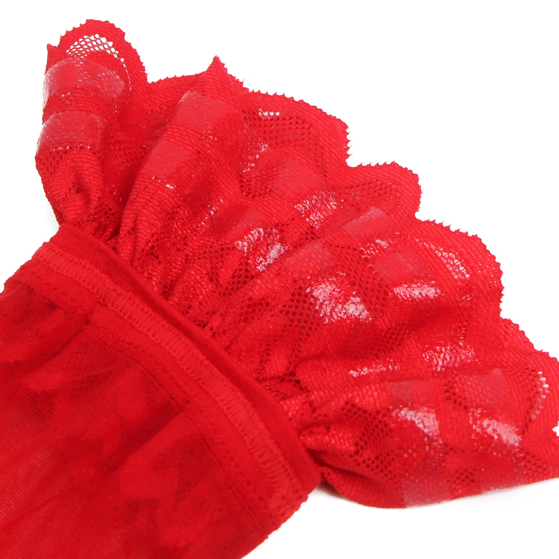 Bas rouges sexy en dentelle avec bretelles en silicone