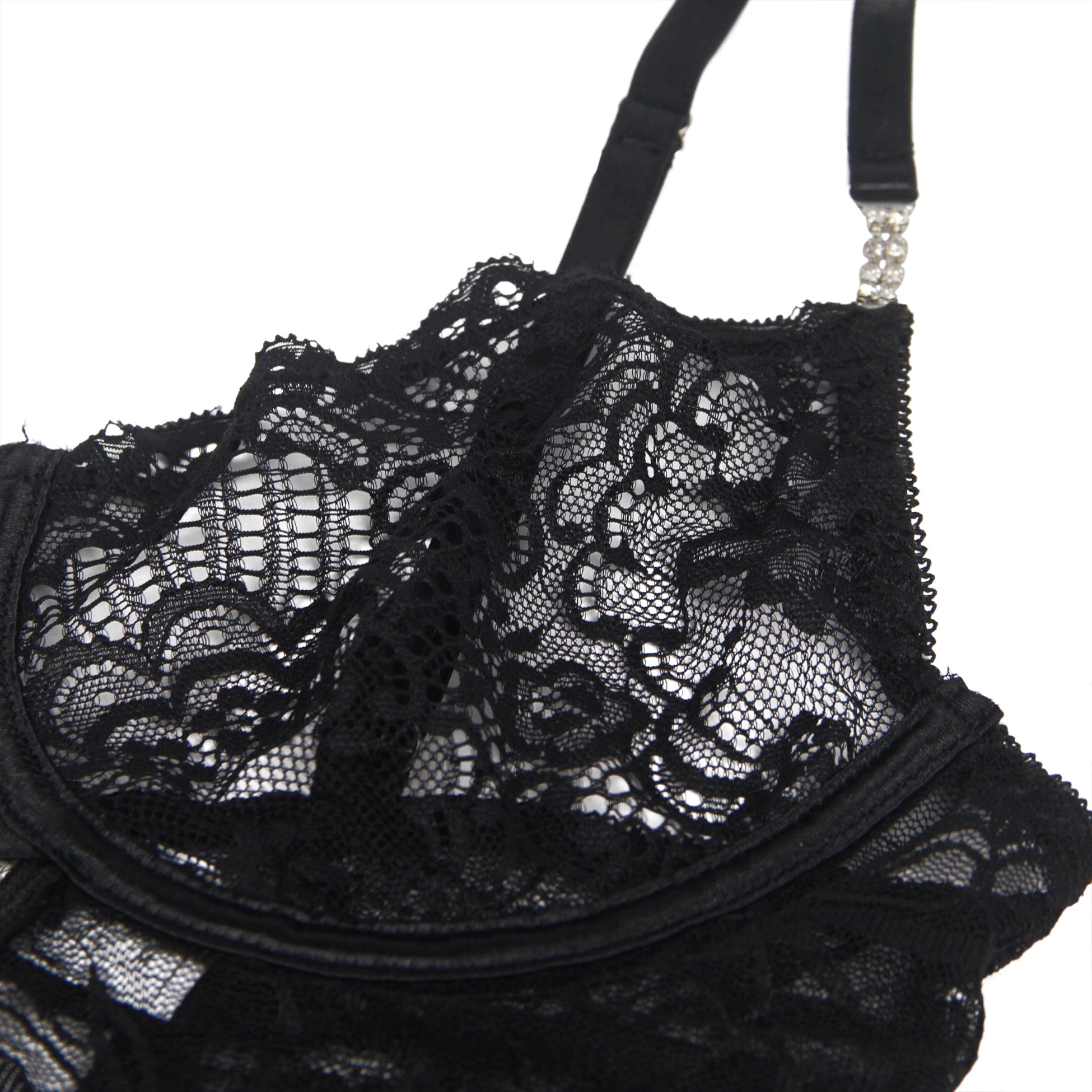 • Black Lace With Underwire Adjustable Straps Babydoll