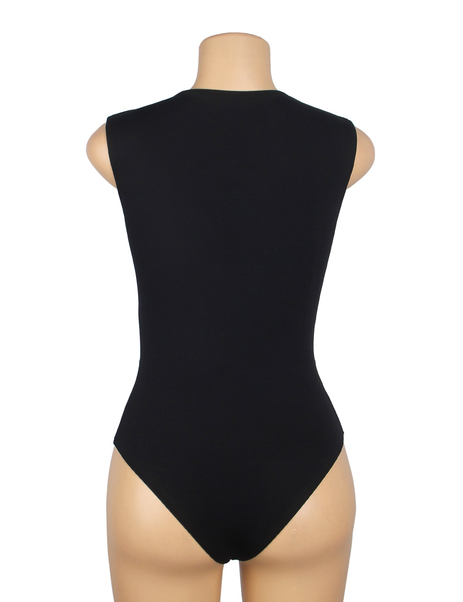 • Black Sexy Swim Cloth Deep V Neck Sleeveless Open Crotch Bodysuit