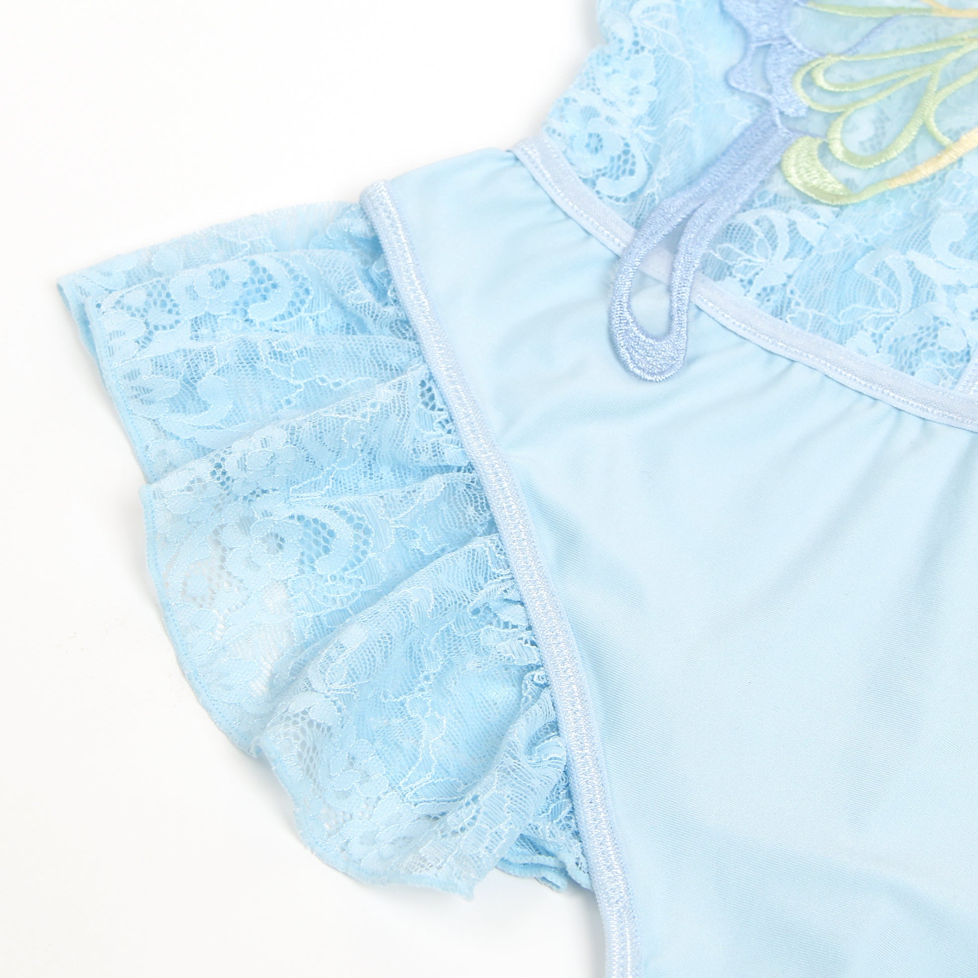 • Blue Sexy Lace See Through Butterfly Bodysuit