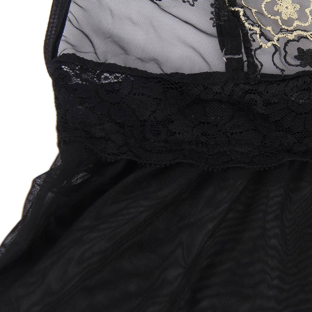 • Elegant Black See-through Lace Exquisite Embroidery Sexy Babydoll