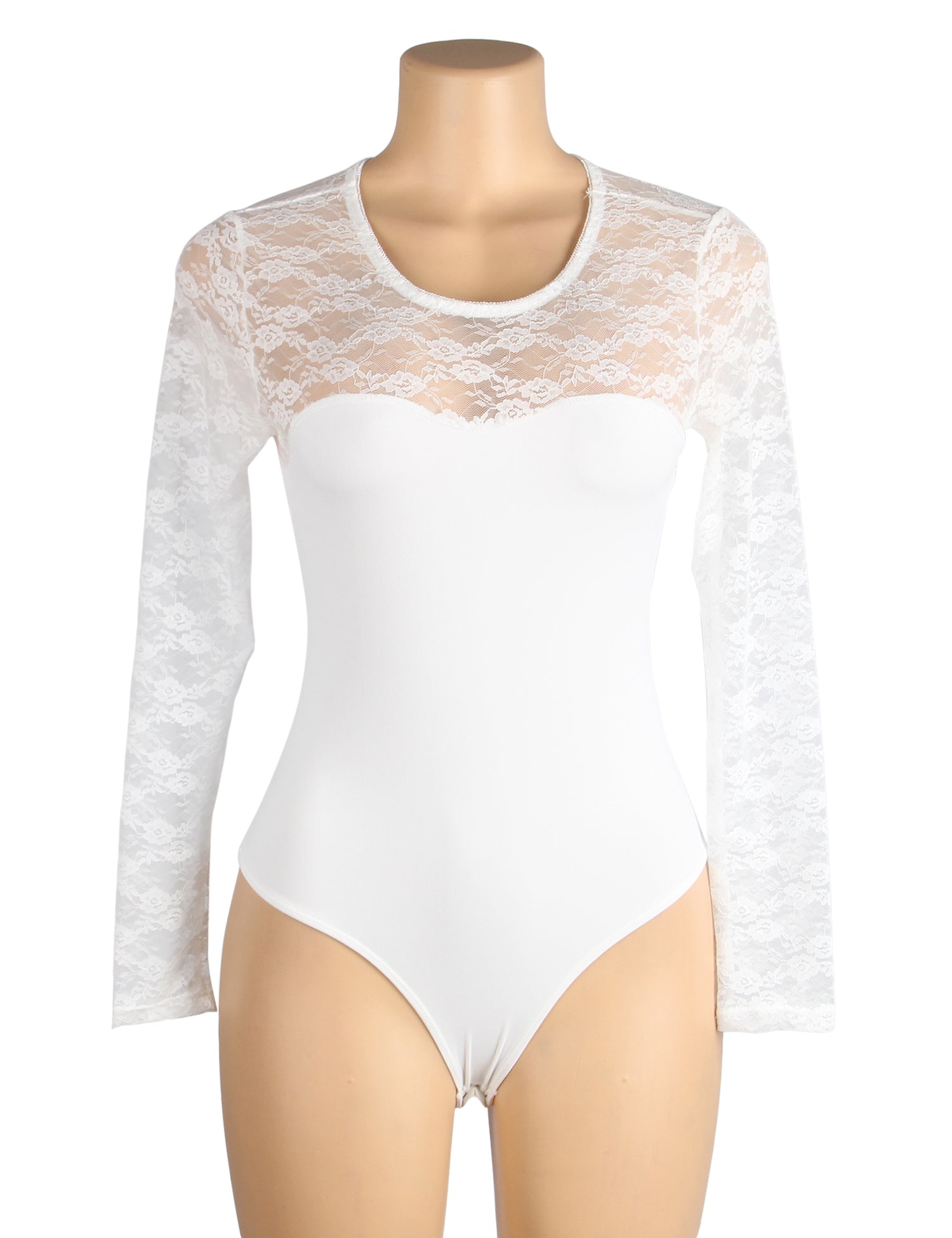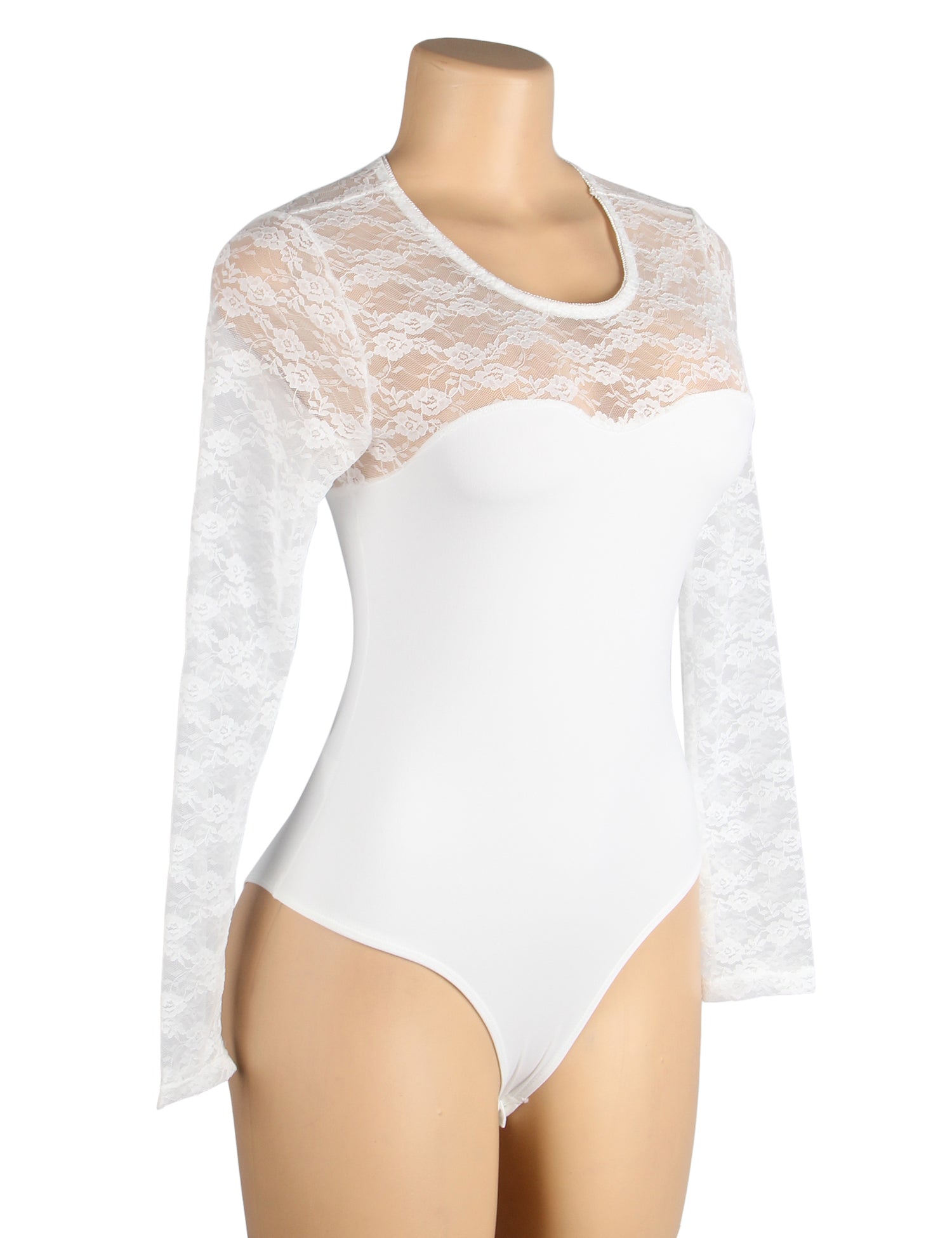 • Long Sleeve Openable Crotch Lace White Bodysuit