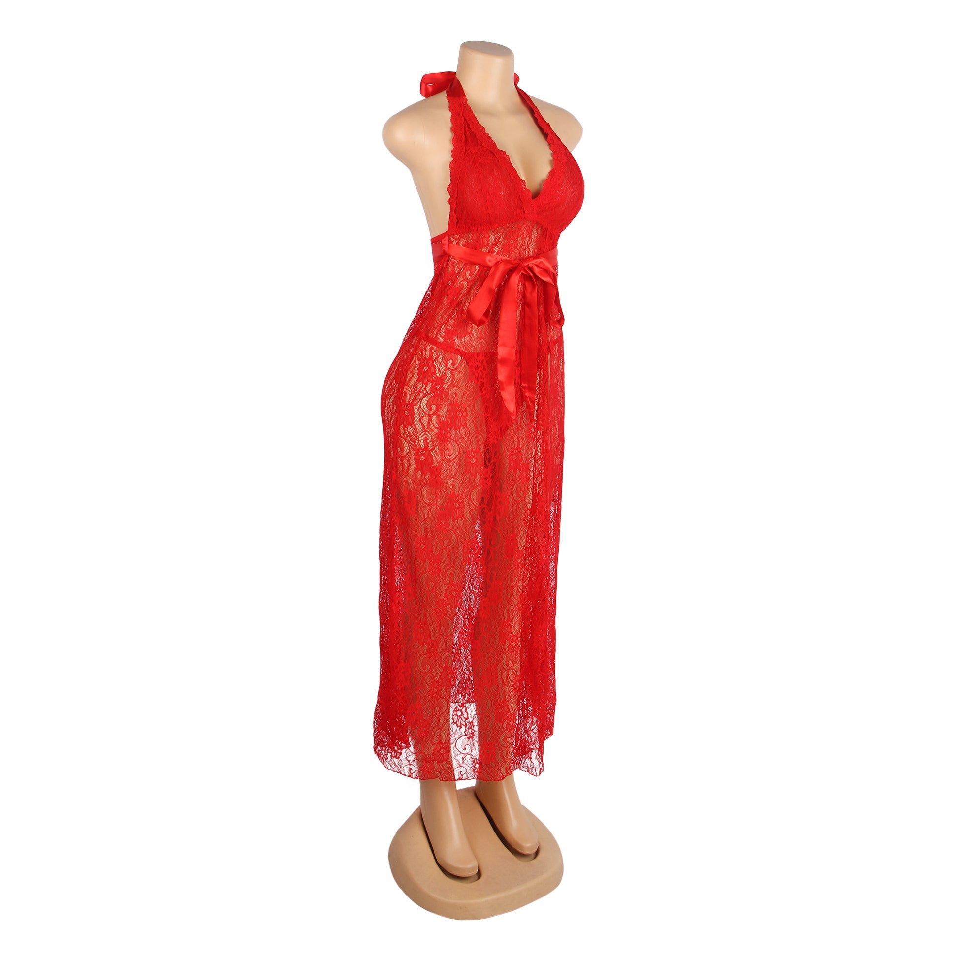 • Red Sexy Lace Halter Neck Night Dress