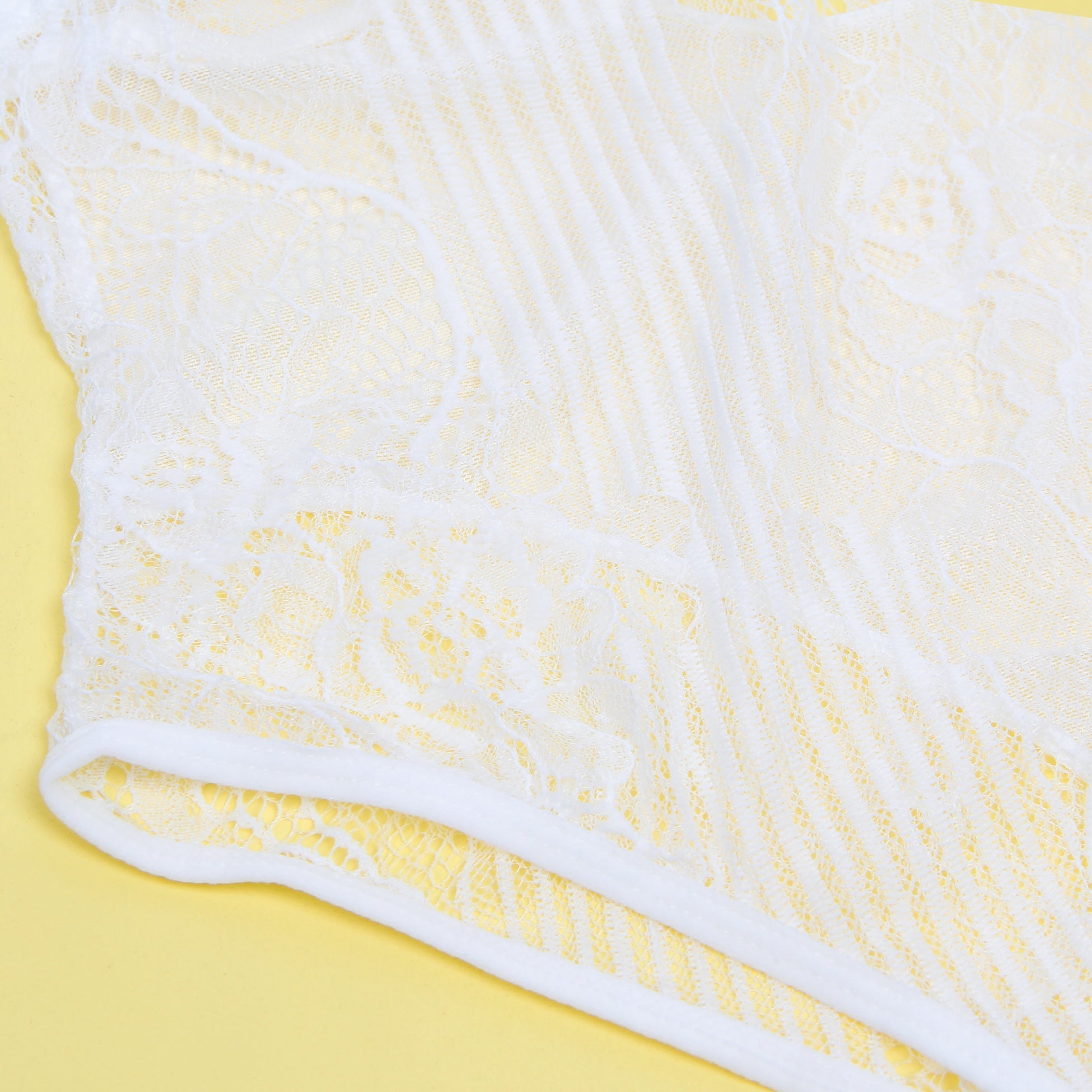 • White Sexy Lace Push Up Open Crotch Bodysuit